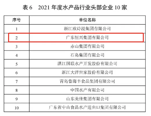 其中,广东恒兴饲料实业股份有限公司入选2021年度农业产业化头部龙头企业,广东恒兴集团有限公司入选2021年度水产品行业头部企业。