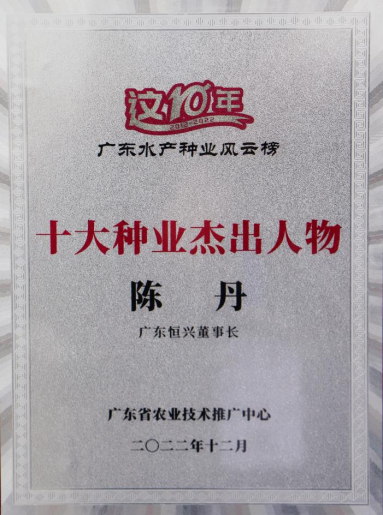 (通讯员 蔡雅琪)12月20日,第三届中国水产种业博览会暨第四届广东水产种业产业大会在广东国际渔业高科技园隆重揭幕。本届大会重磅公布了“这十年”广东水产种业风云榜。恒兴陈丹董事长获得“十大种业杰出人物”荣誉称号、恒兴荣获“十大种业企业”荣誉称号。