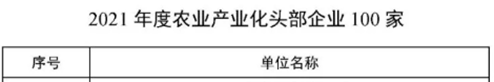 近日,中国农业产业化龙头企业协会发布2021年度农业产业化头部龙头企业100家名单,以及科技创新、发展潜力、融资上市头部企业各10家粮食、植物油、肉类、蛋品、乳品、水产品、果蔬、茶、中药、饲料行业头部企业各10家。