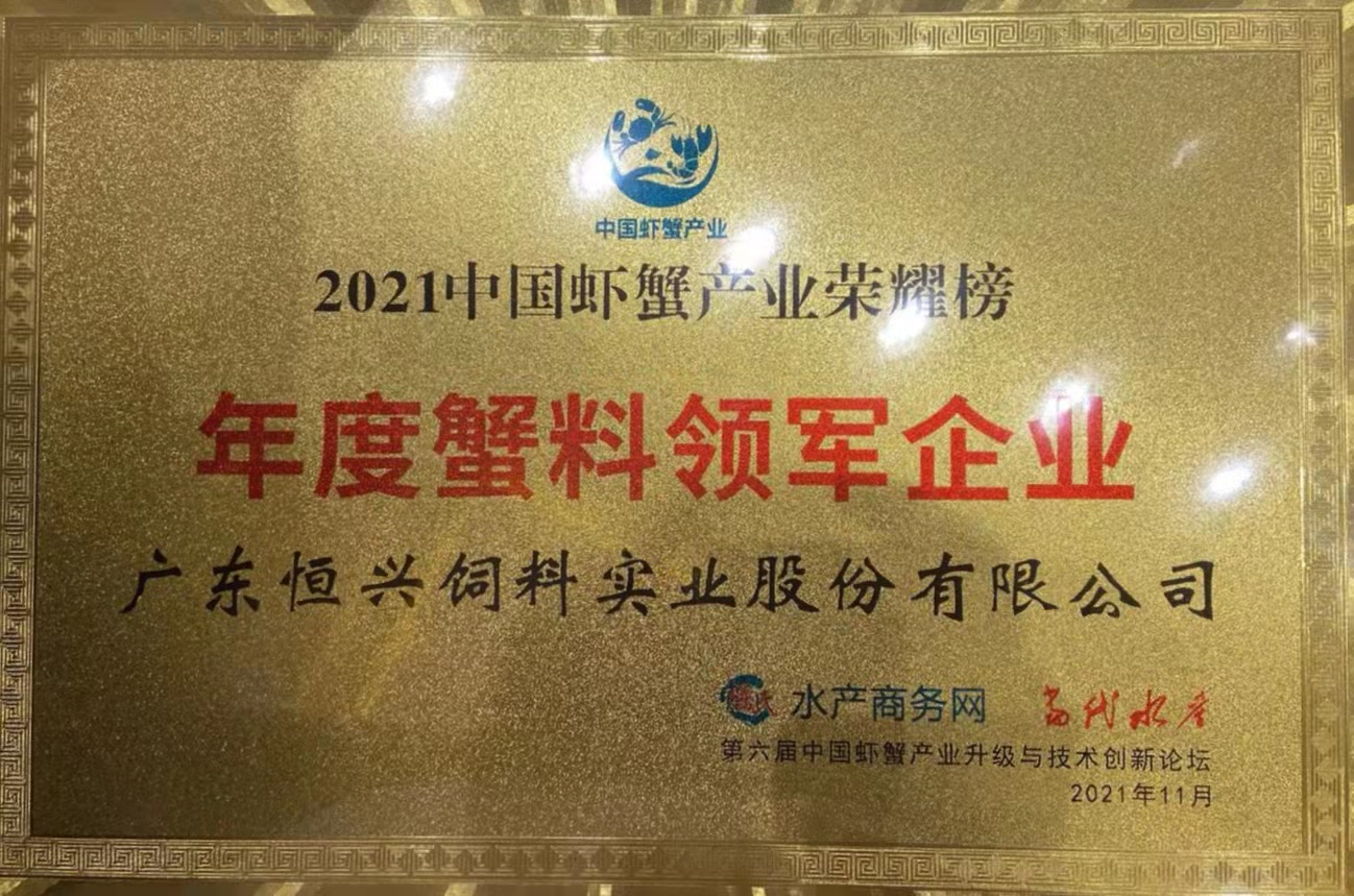 11月23-24日,由行业知名媒体当代水产主办的“2021第六届中国虾蟹产业升级与技术创新论坛”在江苏常州溧阳举办,来自华东区域从事虾蟹板块研究的专家学者、行业优秀企业代表以及一线市场经销商、养殖户等500余人参加。经组委会及相关专家的一致评定,公司荣获“年度蟹料领军企业”称号。