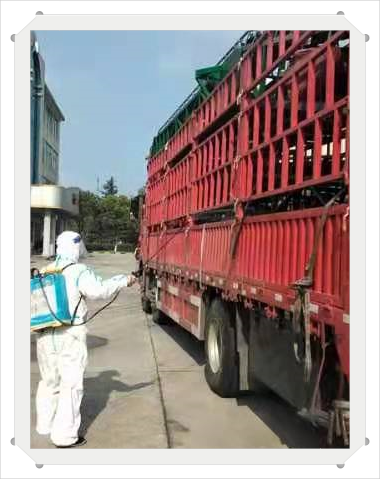 目前所有外来车辆已全部落实全车消毒,货车司机非必要不得下车。内部防疫人员“全副武装”对外来车辆做好消毒工作,不放过一个死角,从而为疫情防控筑起一坚实有力的隔离墙。