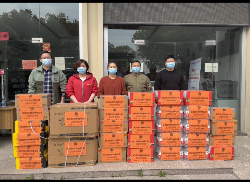 3月30日,浙江恒兴艾美尔事业部苗又青总经理携行政人事部经理徐晓霞、财务部经理钟华能为嘉善县国庆村村委,送去一次性医用口罩一万只以及其他抗疫物资三十余箱。