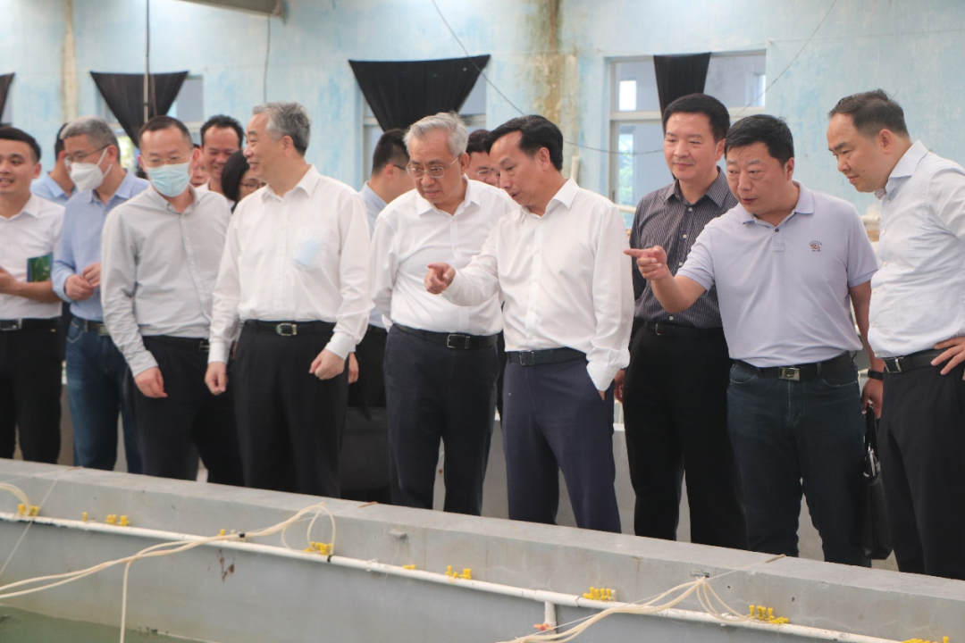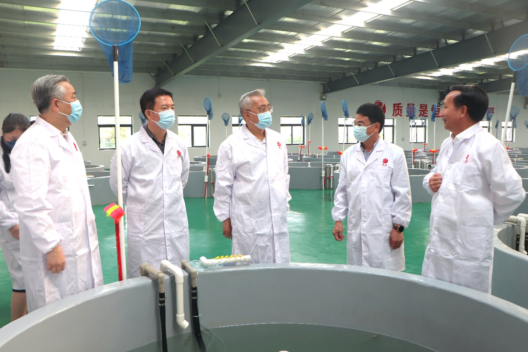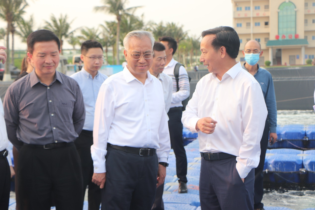 4月19日至20日,省政府党组成员陈良贤到湛江,为扎实推进农业农村现代化、加快建设现代化海洋牧场开展调研。在省政府副秘书长郑伟仪,湛江市委副书记、市长曾进泽的陪同下,陈良贤先后深入恒兴深水网箱养殖基地、国家863计划项目海水养殖种子工程南方基地、恒兴水产食品研发中心调研,恒兴集团董事长陈丹陪同调研。
