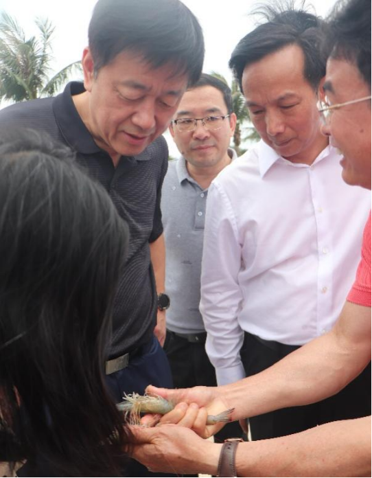 李旭东副厅长一行到育种中心参观了南美白对虾“中兴1号”,在交流中,何建国教授向李旭东副厅长介绍,恒兴863基地填补了国内自主选育南美白对虾种虾的空白,是中国较大规模的专业对虾育种基地。