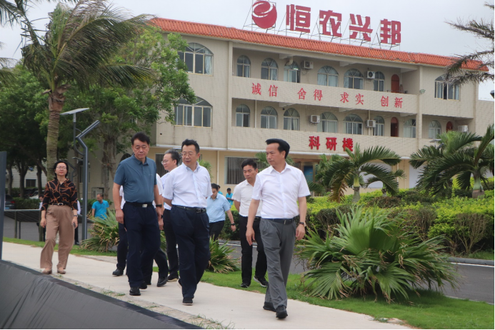 5月9日下午,科技部农村科技司司长叶玉江一行到国家863计划项目海水养殖种子工程南方基地调研。广东省科技厅副厅长李旭东、湛江市科技局局长赵刚、恒兴董事长陈丹、区域副总裁莫爵君等领导陪同调研。