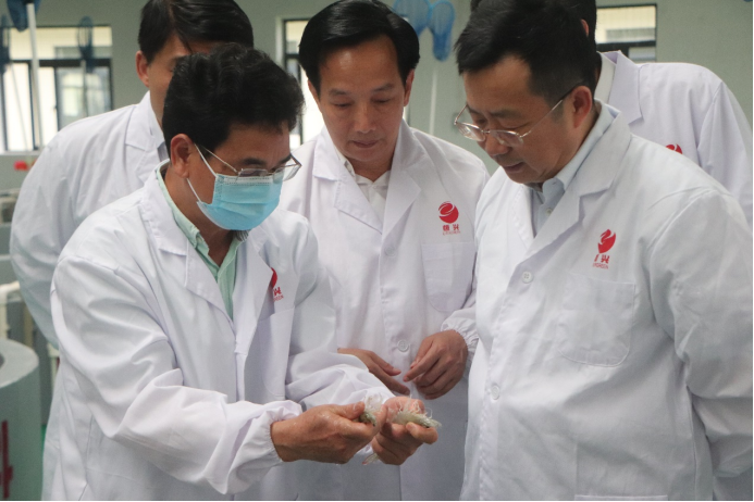 叶玉江司长充分肯定了恒兴为种业振兴、推动海洋渔业高质量发展做出的重要贡献,特别表扬了恒兴国家863基地突破国外对种质资源的封锁,解决海洋渔业种源“卡脖子”问题,让对虾种质真正攥在自己手里,并对恒兴多年来专注农业、坚持做大做强水产食品产业链的农业情怀给予高度评价和赞赏。
