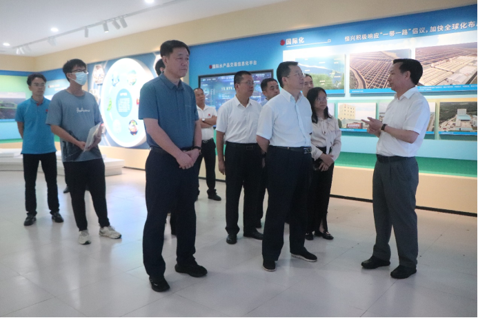 叶玉江司长一行先后调研了育种中心、种鱼车间、企业展厅以及养殖池塘,了解恒兴在种质开发、海洋牧场、成果转化等方面工作。陈丹董事长为叶玉江司长一行介绍了国家863基地在南美白对虾新品种选育上所取得的成果和最新进展,介绍了东星斑、鮸鱼、章红鱼、军曹鱼、斑节对虾、罗氏沼虾、红螯螯虾、珍珠石斑、老鼠斑、龙趸、生鱼、斑点叉尾鮰等水产品种的育种、育苗技术攻关情况。在企业展厅里,陈丹董事长介绍了恒兴在种业科技、养殖模式创新、饲料营养、海洋牧场、国际化发展、水产食品、社会责任等领域的发展成果,并通过大屏幕向叶玉江司长一行展示U鱼设备的水质监控和食品生产车间的实时动态。